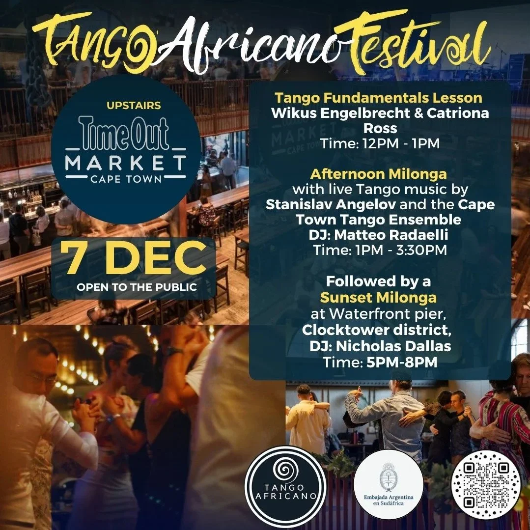 The main festival activities are on 5-7 December, with the core Tango workshops, social dances and other activities on 5-6 December at the Pinelands Girl Guides Hall. NO DROP-INS will be allowed on 5-6 December: entry is strictly for festival registrants.